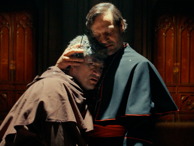Rodrigo de la Serna es el primero en aparecer en escena, interpretando a un obispo que recita una frase cargada de tono religioso: “Sangre de la alianza eterna que será derramada ante vosotros…”. Este inicio marca el tono del video, que combina elementos de crítica, ironía y reflexión.